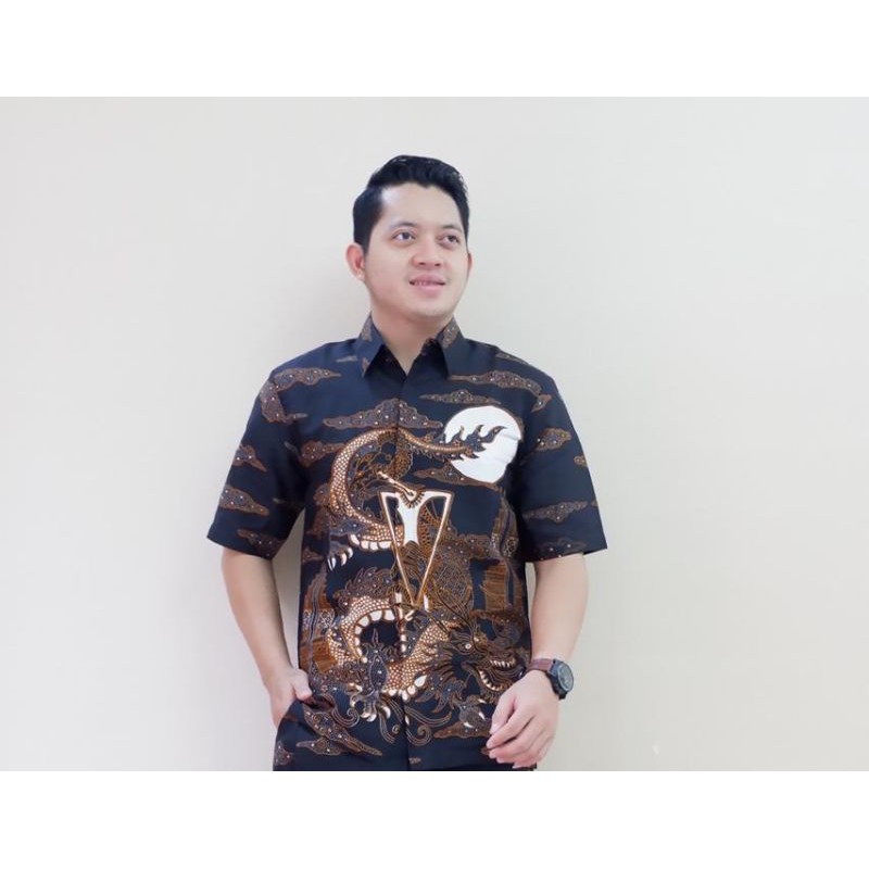 Kemeja pria batik solo trendy motif naga bulan
