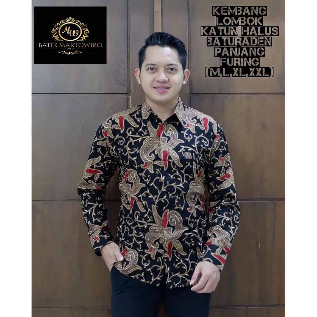 Paling Murah Pakaian di Kabupaten Lampung Selatan Kemeja Batik Pria Full Furing Lengan Panjang Katun Halus Baturadenan Motif Kembang Lombok dari Batik Pitulas Kota Surakarta (solo)