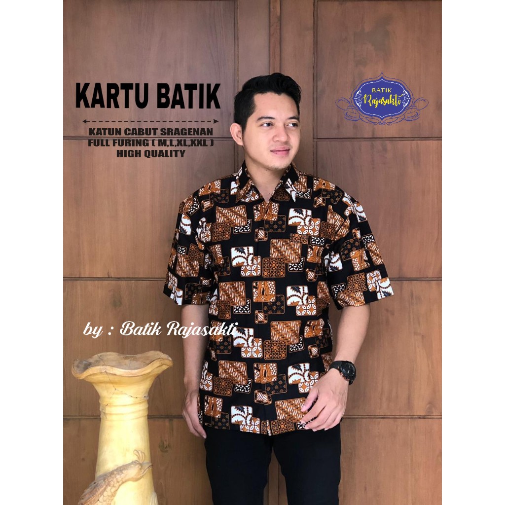 Name: Atasan Kemeja Batik Pria Lengan Pendek Premium Kartu Batik Full Furing Rajasakti Solo Ori