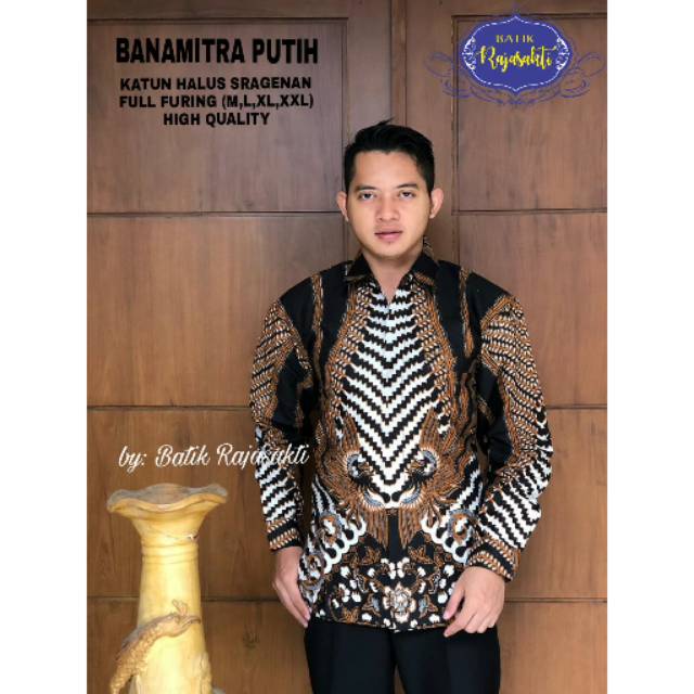 Name: Batik Solo Banamitra Putih Kemeja Pria Katun Halus Sragenan Full Furing