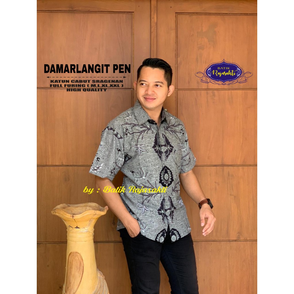 Name: Atasan Kemeja Batik Pria Lengan Pendek Premium Damarlangit Pen Full Furing Rajasakti Solo Ori