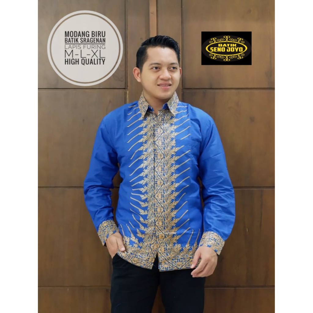 Name: Batik Pria Lapis Furing Modang Dasaran Biru Bahan Katun Sragenan / Masbatiksolo