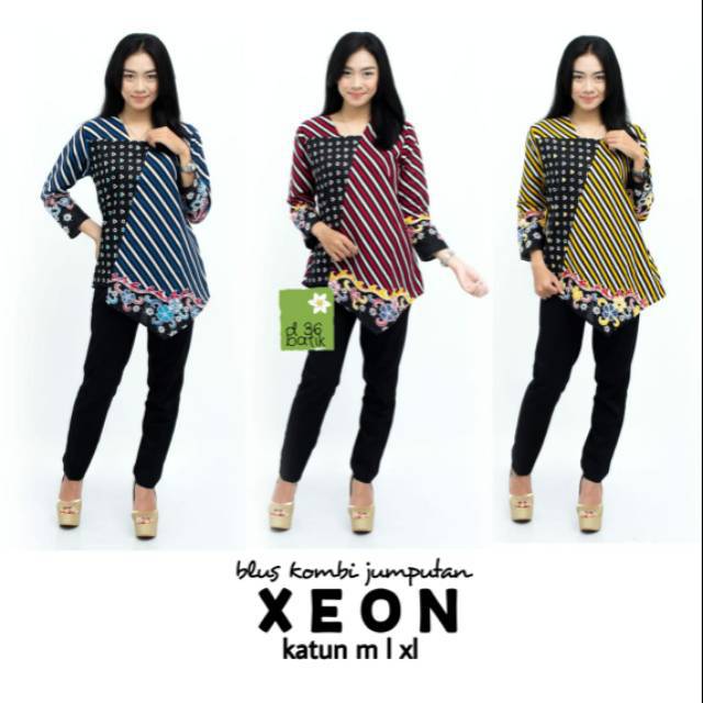 BLUS KOMBI JUMPUTAN XEON BLUS BATIK CEWEK BLOUSE BATIK WANITA SERAGAM BATIK KERJA BATIK MUSLIM SOLO