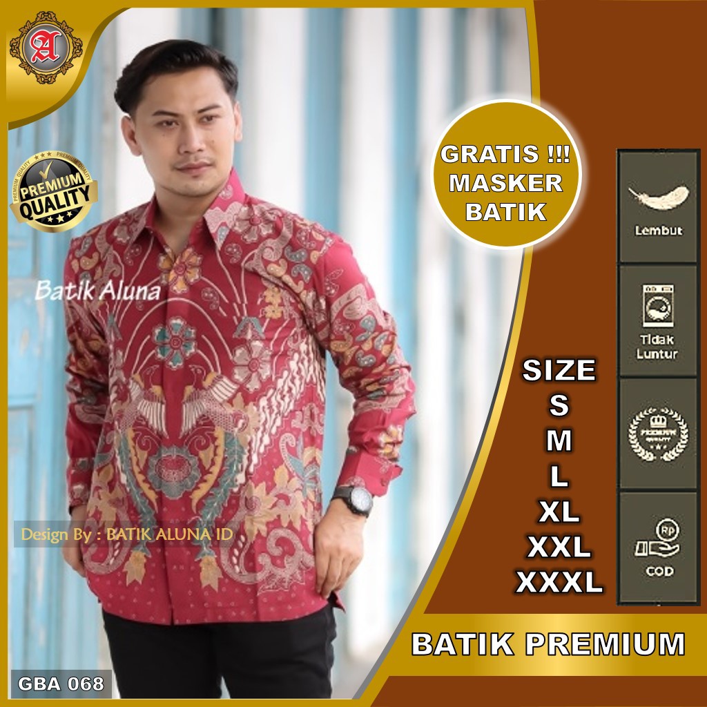 BATIK PRIA PREMIUM LENGAN PANJANG FULL FURING GBA 068 (FREE MASKER BATIK)